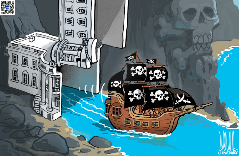 US pirate ship Cartoon by Luo Jie/China Daily