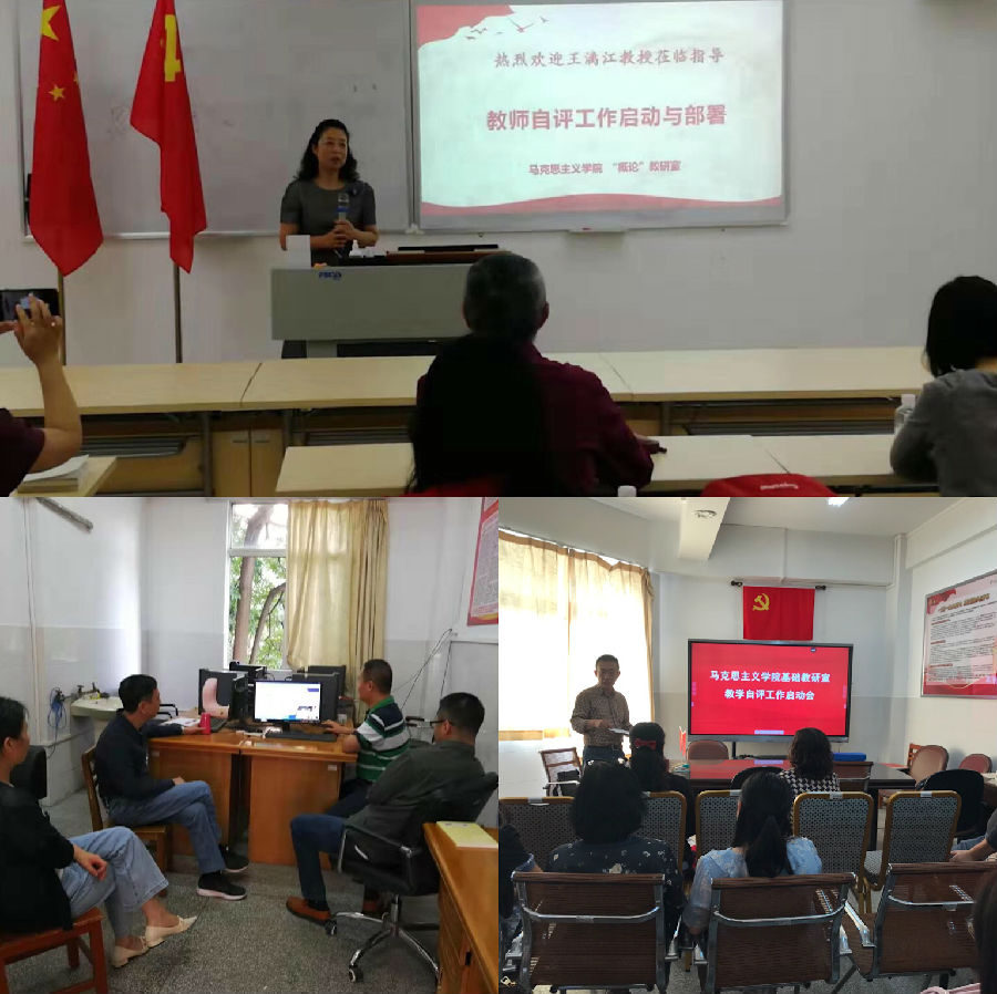 10月28日,马克思主义学院“毛泽东思想和中国特色社会主义理论体系概论教研室”、“思想道德修养与法律基础教研室”、“形势与政策教研室”等三个教研室先后启动教师授课自评工作,这是我院第二年进入学校教师授课自我评价的试点单位。在去年成功试点的基础上,今年继续深入开展教师授课的自我评价、自我总结、自我整改,以进一步提高教师的授课水平,这是学校对我院教学工作的肯定。 当天下午,学校督导王漓江老师亲自莅临我院,指导概论教研室教师授课自评启动工作,部署相关事项。 (马克思主义学院、教学督导室)