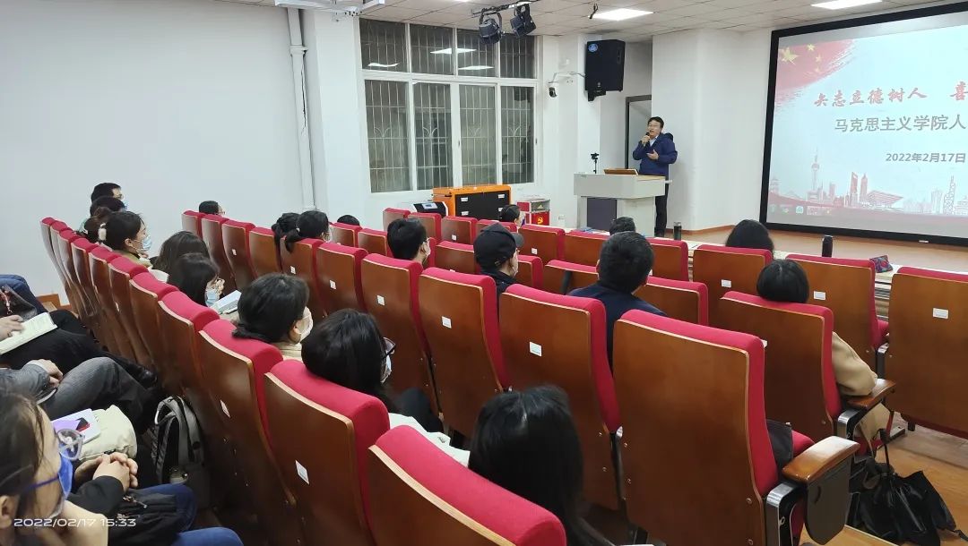 首先,主持党总支工作副书记余展洪安排部署新一年党建工作。要求继续开展党史、四史学习教育,做好十九届六中全会、二十大的学习、宣传、宣讲、理论研究,扎实推进进课堂、进教材、进学生头脑、进社区、进社会。余书记勉励全体教师牢记“三个政治身份”:牢记教育工作者身份,真心喜爱、踔厉奋发、笃行不怠;牢记共产党员身份,提高政治站位、提升政治执行力;牢记思政课教师身份,做 “六要”思政课教师。