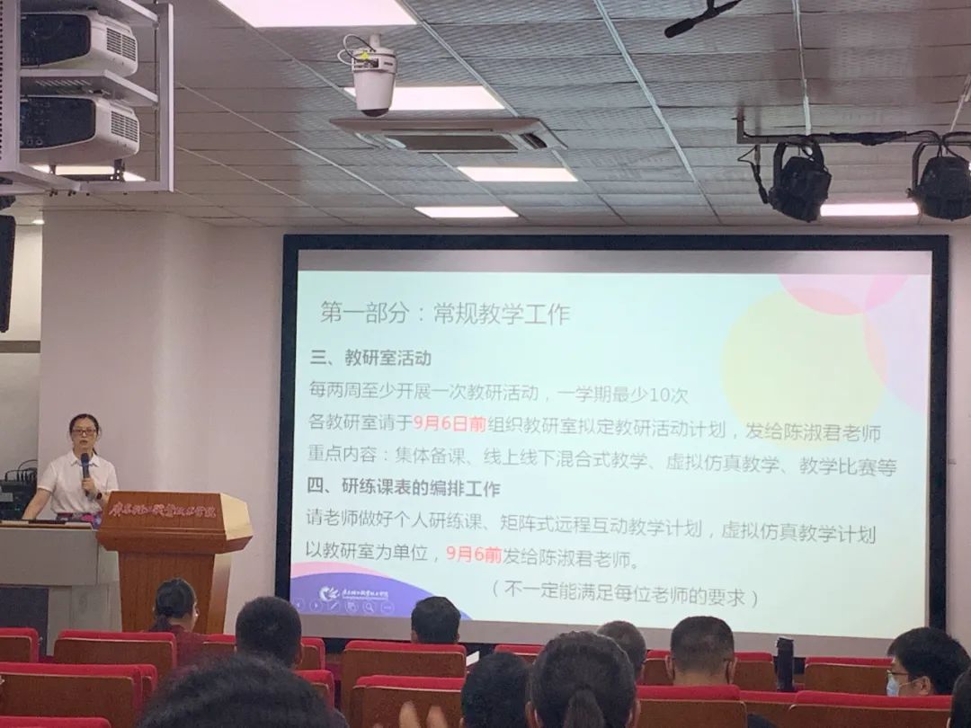 会议伊始,由教学副院长蔡小葵部署新学期工作。首先,她阐明现阶段马院发展所面临的机遇和挑战,并就常规的教学工作以及本学期主抓的教学工作做出布置,强调马院教师应增强紧迫感,贯彻“教学是马院的立院之本”这一宗旨,新教师要加强听课学习,全体教师要在教学质量提升、教学管理规范等方面都要严格要求自己,积极参加各项教学比赛,不断提升自身业务水平。
