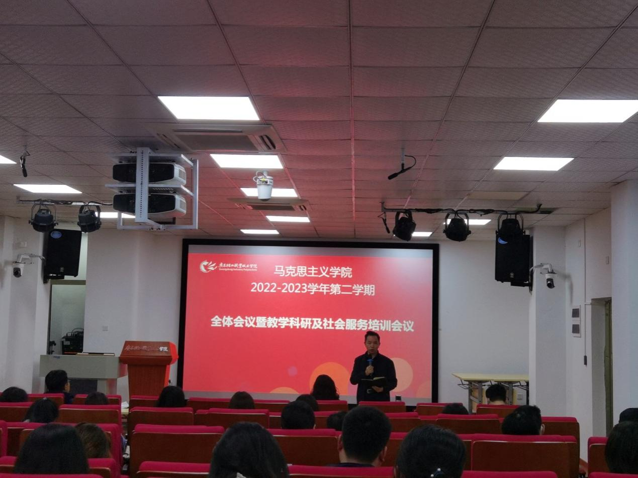 2月10日上午,马克思主义学院新学年第一次全体会议暨教学科研及社会服务培训会议在广州新港校区第一工业实训楼105举行,学院全体教职员工参加会议,会议由学院院长储水江教授主持。