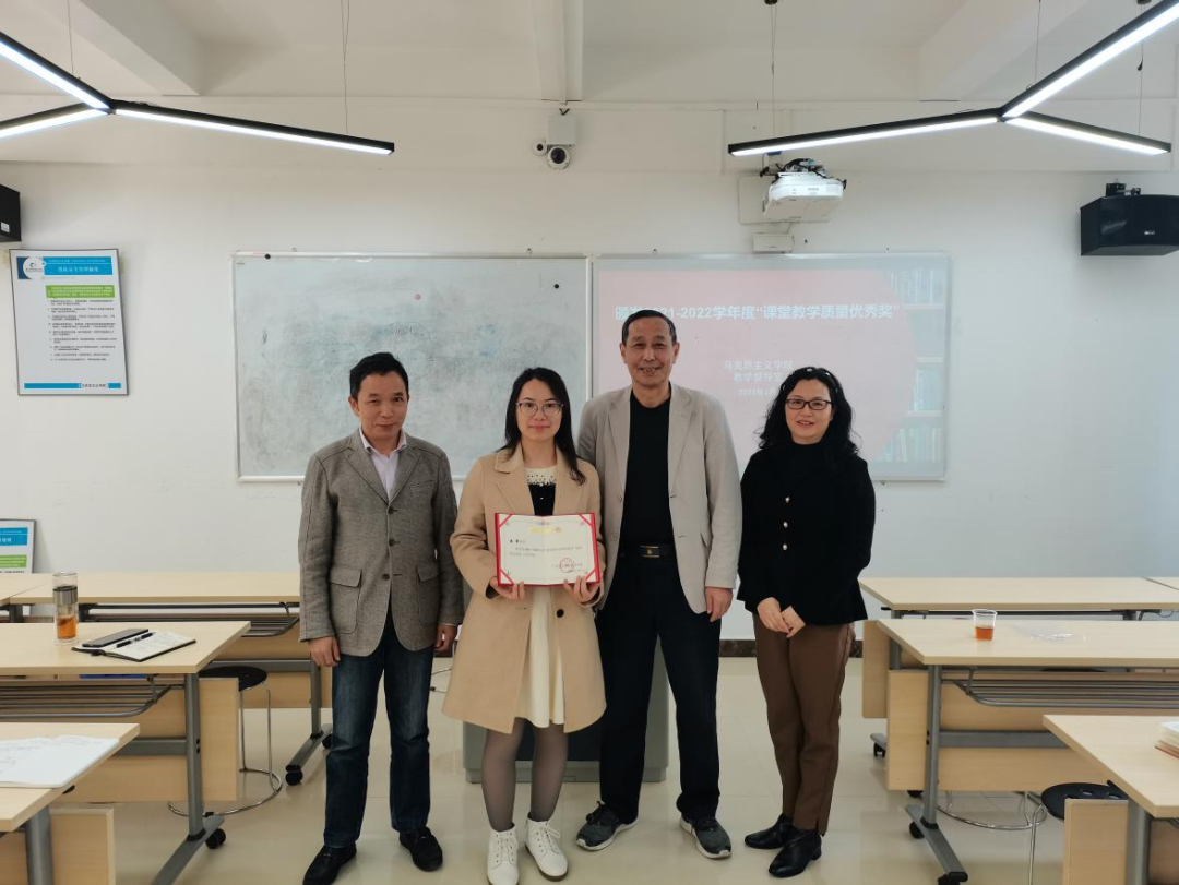 会上,对2021-2022学年度“课堂教学质量优秀奖”获得者余芳老师进行了颁奖。(马克思主义学院/学校教学督导室)
