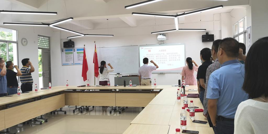 (上图:主持党总支工作的副书记余展洪领誓,全体与会人员一起重温入党誓词)