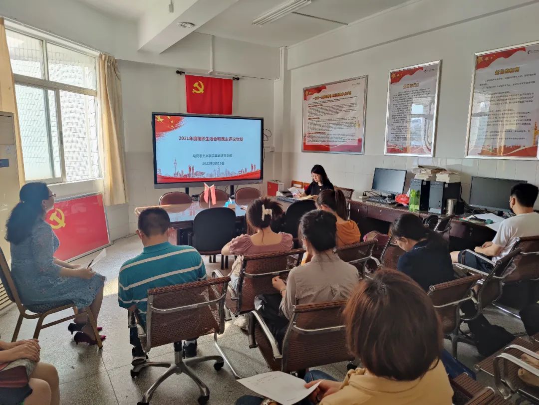 3月15日下午,我院概论课党支部、形势与政策课党支部、基础课党支部于第一实训楼206、104室和教学楼301室分别召开了2021年度组织生活会及民主评议党员大会,全体党员教师参会。