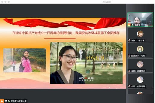 会计201张雅婷同学指出,听了宋老师的宣讲,我更坚定了跟党走的信念。回首我党百年奋斗之路,之所以能够不断战胜艰难险阻,取得一个又一个胜利,就是因为我们坚定信仰,以忠诚之心践行我们的使命。我们要认真贯彻中央的部署,紧跟党的脚步。