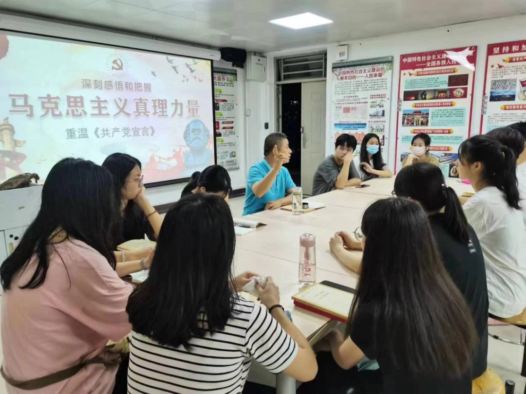 为加强我院党总支指导下的思政类学生社团的党史学习教育,激发学生红色经典的学习兴趣和动力,引导新时代青年传承红色基因,持续激发青年群体的信仰伟力。6月14日晚,在南海校区北区研练中心3203室,我院党总支顺利开展面向思政类学生社团:中国特色社会主义理论体系研究协会的读书沙龙活动。本次读书沙龙邀请了我院概论教研室主任高顺起老师主持主讲经典著作《共产党宣言》,该协会10位骨干参加了沙龙并分享学习感悟。