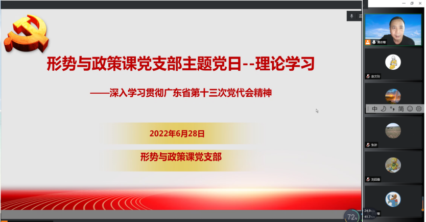 6月28日下午,马克思主义学院三个党支部在线上开展学习中国共产党广东省第十三次代表大会精神主题党日活动。