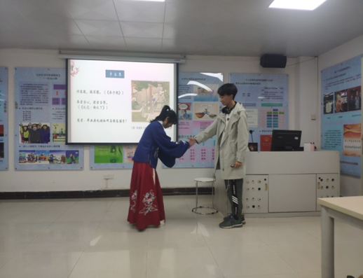其次,礼的文化精神体现在四方面:礼的终极目标是“和”,“礼之用,和为贵”;礼的核心精神是“敬”,“自卑而尊人”;礼的外在形式是规范,“非礼勿视,非礼勿听,非礼勿言,非礼勿动”;礼的重要特色是典雅,“文质彬彬,然后君子”。谈到古代礼仪的内容,罗老师从见面礼、成人礼、婚礼、释奠礼等方面进行了详细地解说,同时请同学们结合自身经历,进行了一次生动的分享。