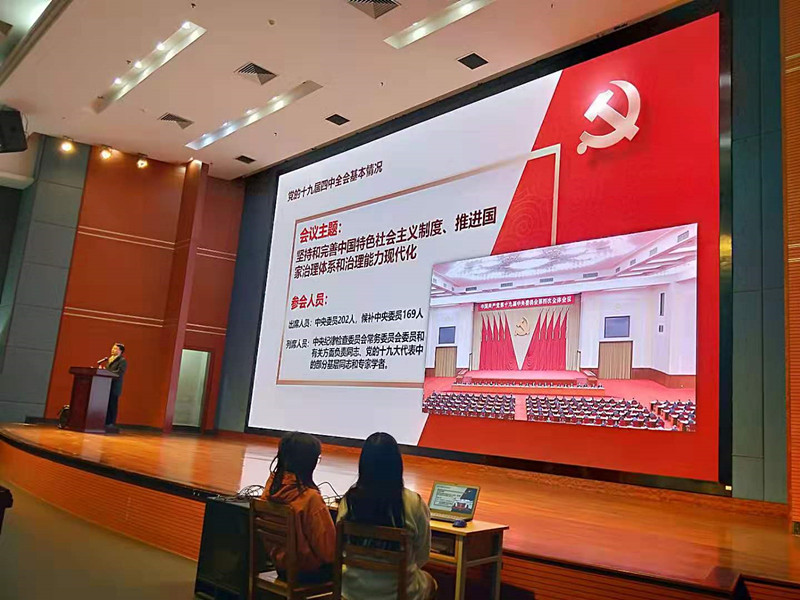 为深入学习宣传贯彻习近平总书记在党的十九届四中全会上的重要讲话精神和全会精神,深入贯彻落实中共广东省委宣传部、中共广东省委教育工委《关于开展读懂“中国之治”专题思政课和系列讲堂活动的通知》精神,12月24日、和12月27日的上午,学校分别在广州和南海两校区开展了读懂“中国之治”专题思政课宣讲会,主讲人为马克思主义学院院刘红卫博士,来自各二级学院500名学生代表参加,马院党总支副书记余展洪主持了宣传会。