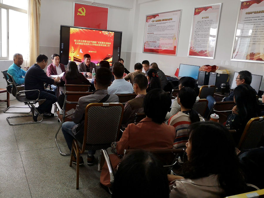 储水江在主持会议时要求全体教师把学习贯彻落实习近平总书记视察广东重要讲话精神引向深入,认真领会李铭辉提出的“三要”要求,推动马克思主义学院建设迈上新台阶。