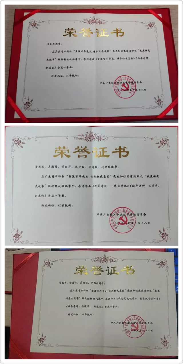 根据活动安排,约300名参与知识竞赛答题活动的同学和提交短视频参赛的同学获得了德育加分;此外,短视频得奖同学还获得奖励证书和奖品,奖品来自广东省“中科杯”活动协办单位:中科软股教育科技(北京)股份有限公司,其中一、二、三等奖奖品为不同额度京东读书卡、优秀奖奖品为精美书签。相关视频的指导老师也获得荣誉证书以资鼓励。