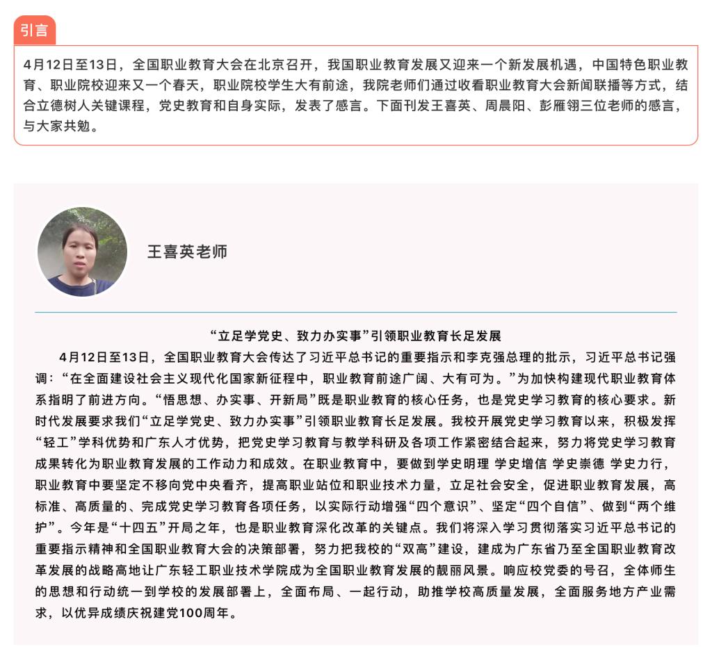 培育工匠精神 培养大国工匠 —— 马克思主义学院教师学习贯彻全国职业教育大会精神感言