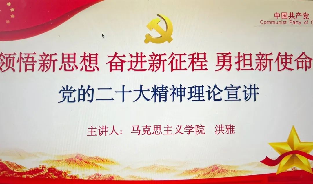 宣讲会上,洪雅老师围绕党的二十大的主题和主要内容,讲述党的十九大以来过去五年的工作和新时代十年伟大变革,在以习近平同志为核心的党中央统筹中华民族伟大复兴的战略全局和世界百年未有之大变局,团结带领全党全军全国各族人民有效应对风险挑战,取得一系列标志性成果,中华民族伟大复兴展现出光明的前景。