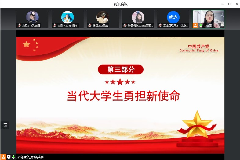 12月16日晚,党委宣传部、马克思主义学院党总支、校团委主办,概论课党支部、马克思主义协会、习近平新时代中国特色社会主义思想研究协会、红色经典研学协会、国学协会等协办的党的二十大精神宣讲学生专场继续进行。本场宣讲活动主讲人为马克思主义学院宋晓亚老师。本场共有250位学生骨干参与线上宣讲活动。