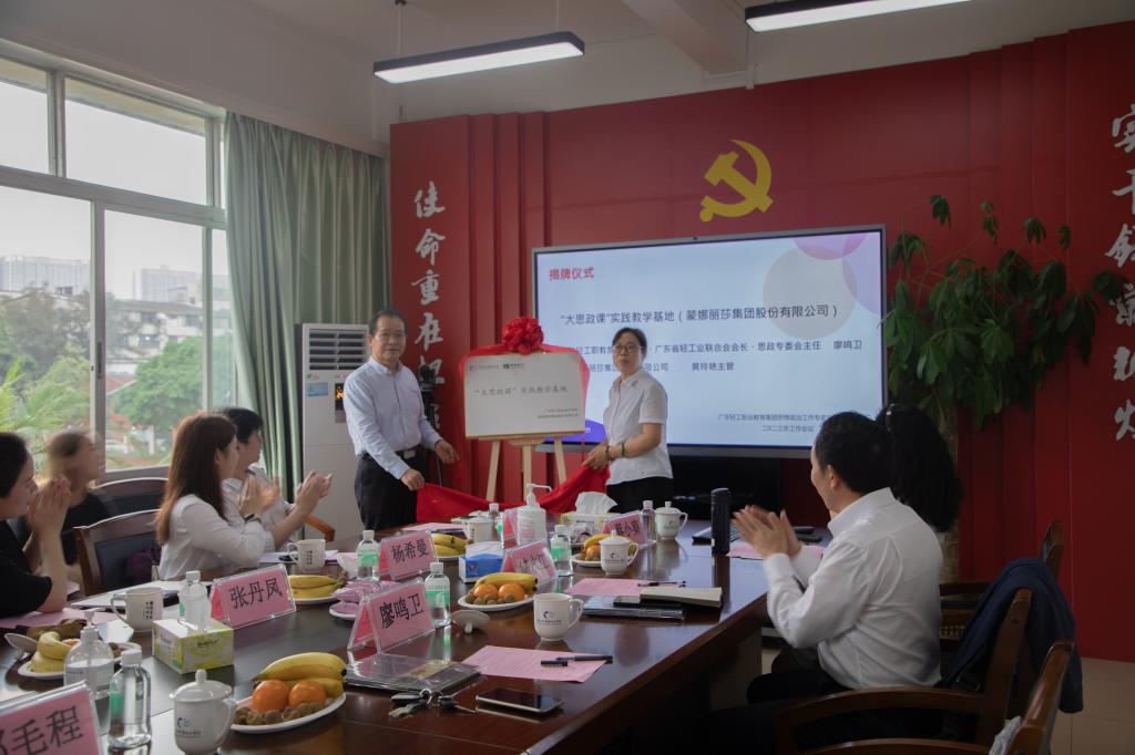 会上进行了“大思政课”实践教学基地(蒙娜丽莎集团股份有限公司)揭牌仪式。由思政专委会主任廖鸣卫和蒙娜丽莎集团股份有限公司行政主任黄玲艳共同揭牌。