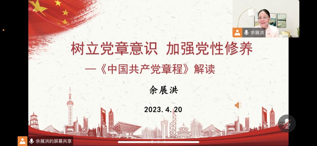 4月20日晚上,我院党总支负责人余展洪教授以线上课堂方式,为我校机关一党总支第39期入党积极分子培训班讲授党课。姜洋洋、黄新辉、刘琼阳、吴盼盼、刘诗佳老师参加了学习培训。本次党课主题是学习党的二十大党章。