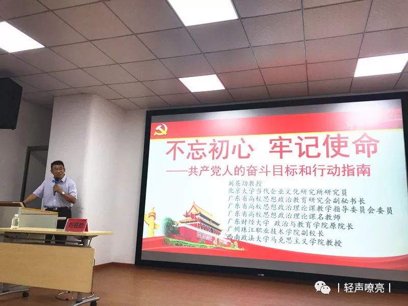 为深入推进马克思主义学院“不忘初心、牢记使命”主题教育,引导全体教师党员提高政治站位,强化理论武装,10月8日下午,马克思主义学院特邀广东省高校思想政治教育研究会副秘书长、广东省高校思想政治理论课名教师、原广东财经大学马克思主义学院院长、我校思想政治理论课教育厅委派教学督导刘苍劲教授莅临我院做以不忘初心、牢记使命为主题的辅导。