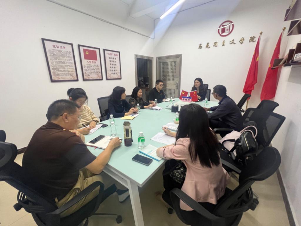 在广州新港校区第一工业实训楼207,梁副书记亲切询问了老师们的工作近况,对各位老师在学校进入新发展阶段后将面临的教学、科研方面挑战以及自身发展等困惑给予了及时解答。她强调,马克思主义学院要不断加强师资队伍建设,重视科研能力的培养,不断促进学院高质量发展,为学校发展贡献力量,为此她提出三点要求:一是在信息社会,教师要具备终身学习、资源共享与应用的能力,提升在信息化环境中有效教学的信息素养;二是积极探索思政课程和专业课程的有效结合,使学生充分领会思政教育的意义和内涵,树立正确的世界观、人生观、价值观;三是思政课教师需要不断提升科研能力,做好科研规划和方法选择,注重团队合作和交流,加强实践和反思,注重创新和思考,推动思政课教学和研究的创新和发展。