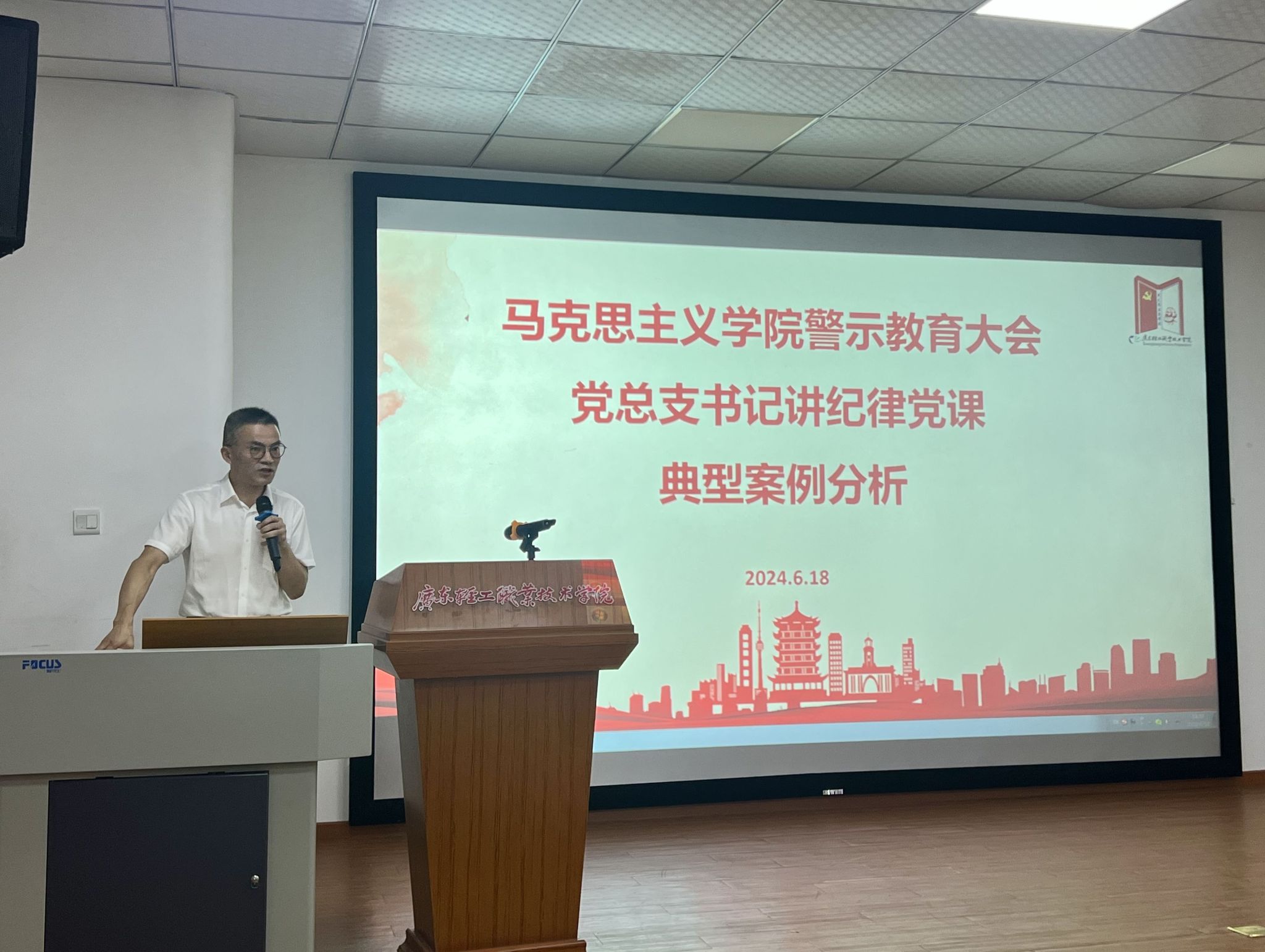 6月18日下午,我院在广州新港校区第一实训楼一百零五多功能会议厅召开党纪学习教育警示教育大会,全体党员教职工参加。