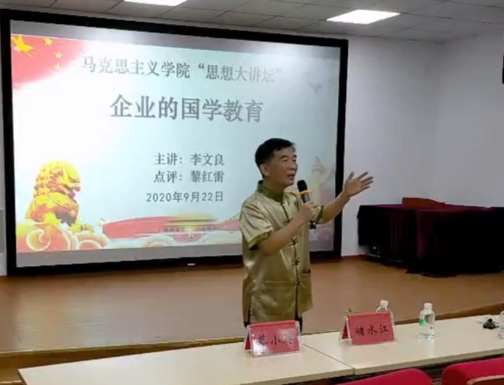 签约仪式后,李文良先生作了题为《企业的国学教育》的讲座,他以个人篇、缘起篇、修学篇、意义篇、求索篇五方面展开,向大家真实展示一个立体、鲜活的企业家成功发展的案例。作为践行儒家思想的学校型企业,李总表示非常愿意与我校进一步深化校企合作,在人才共育、资源共建共享、企业文化建设等方面均可开展深度合作。
